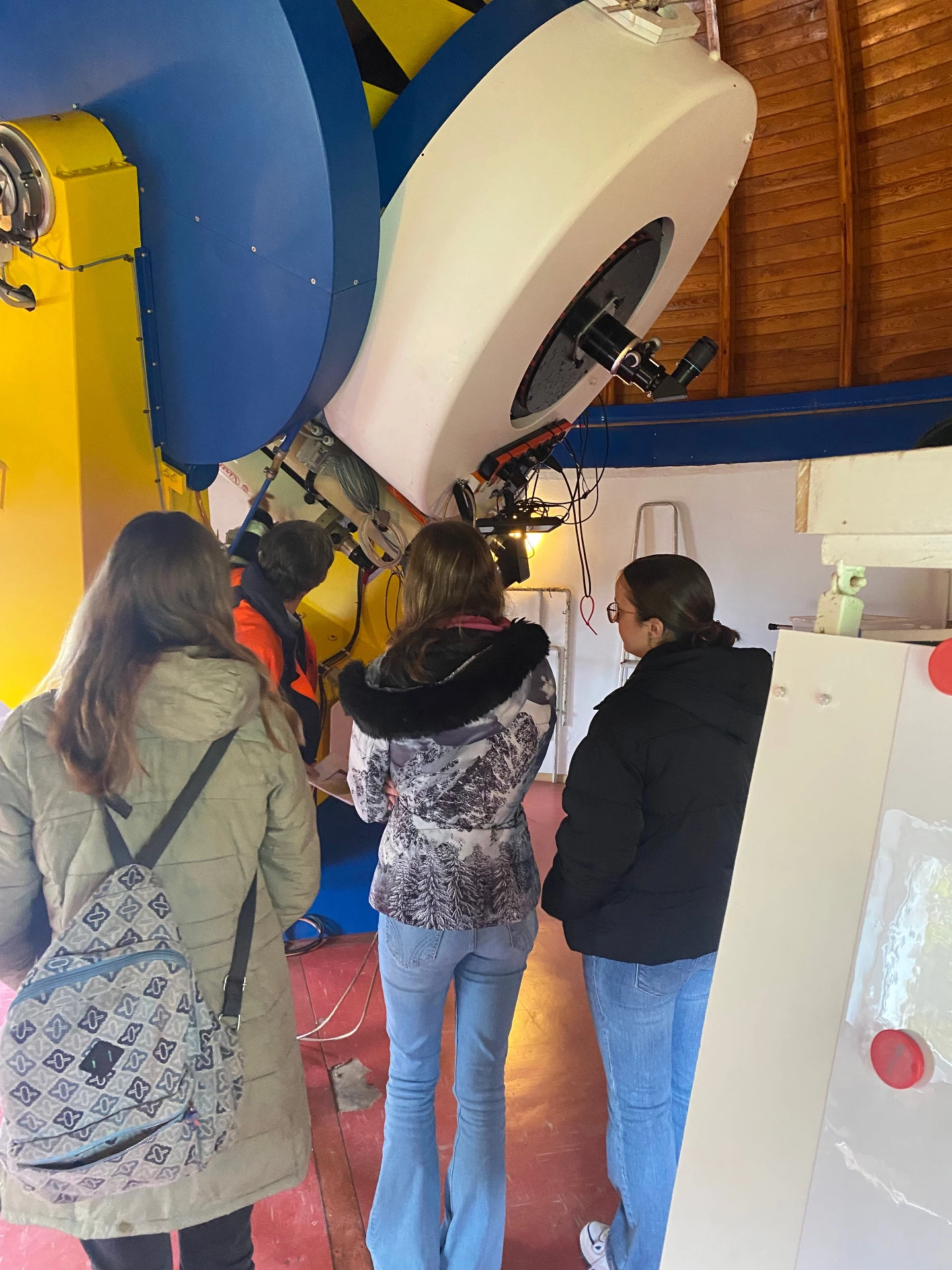 Spannend für die Schülerinnen waren die Experimente zur Spektroskopie in der Astronomie. An einer anderen Station lernten sie die Funktionsweise eines 1-m-Spiegelteleskops kennen. Im Lernraum der AVV erläuterte Arend Sommer anschaulich anhand von Exponaten die Grundlagen der Himmelsmechanik. Etwas anspruchsvoller wurde es bei der Entfernungsbestimmung von Galaxien. An PC-Arbeitsplätzen haben die Schülerinnen unter Anleitung von Norbert Fisseni und zwei Schülern der Astronomie-AG des Johannes-Gymnasiums Lahnstein jeweils eine Galaxie ausgesucht und deren Entfernung bestimmt.